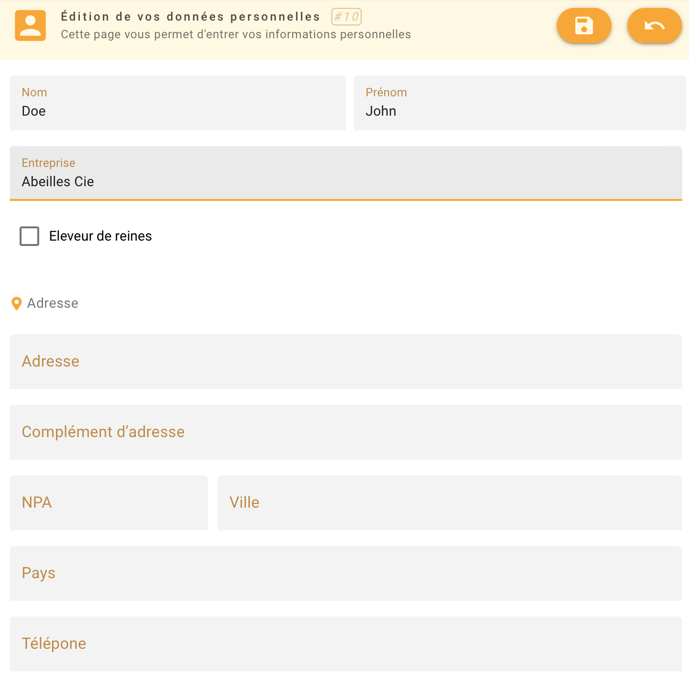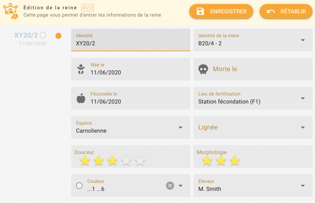 Sélectionnez l’option Eleveur de reines si vous élevez des reines. Votre nom apparaîtra ainsi dans la liste des éleveurs dans le module de gestion des reines.