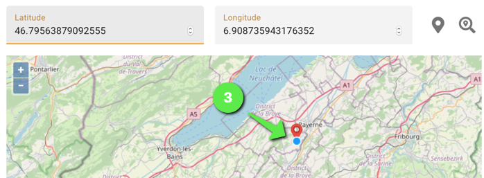- (3) Pour déplacer la localisation du rucher sur la carte: placer le curseur sur le sigle de localisation; une fois qu’un point bleu apparaît, le curseur peut être déplacé librement sur la carte