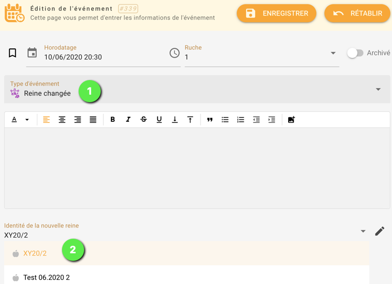- en sélectionnant l’une des reines que vous avez entrée dans le module de gestion des reines:
