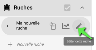 - Editer les informations générales liées au rucher: nom du rucher et descriptif