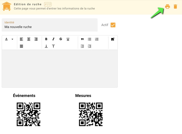 - Imprimer le QR-code (qui pourra ensuite être collé sur la ruche)