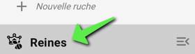 - La couleur des reines est affichée par une pastille à côté du bouton de la ruche une fois une reine associée à une ruche